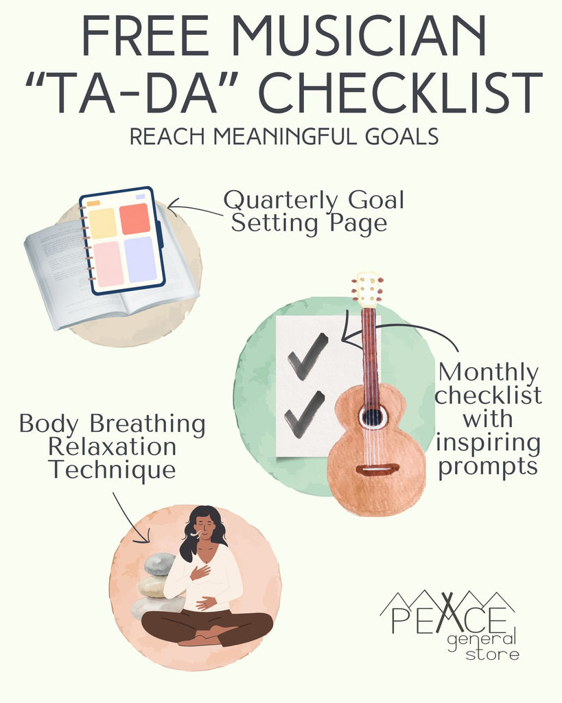 FREE downloadable planner pages to help musicians set meaningful monthly goals and reach them with monthly action checklists or "Ta-Da" Lists.